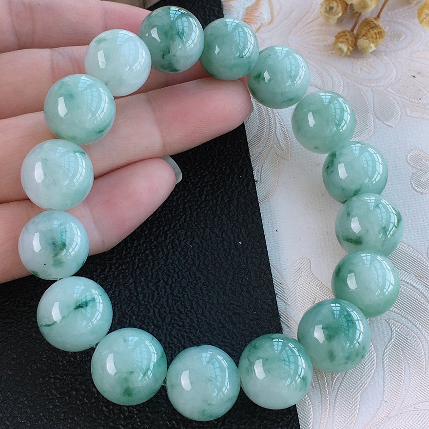 缅甸天然a货翡翠水润圆珠飘花手串68.59g