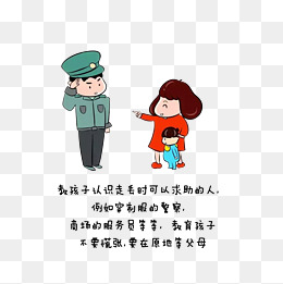 卡通教育小孩人有事可以向警察求助素材