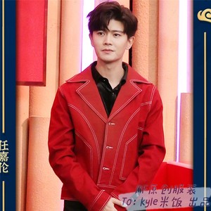 春晚任嘉伦同款外套红色明线设计感翻领单排扣短款衬衫夹克男女潮