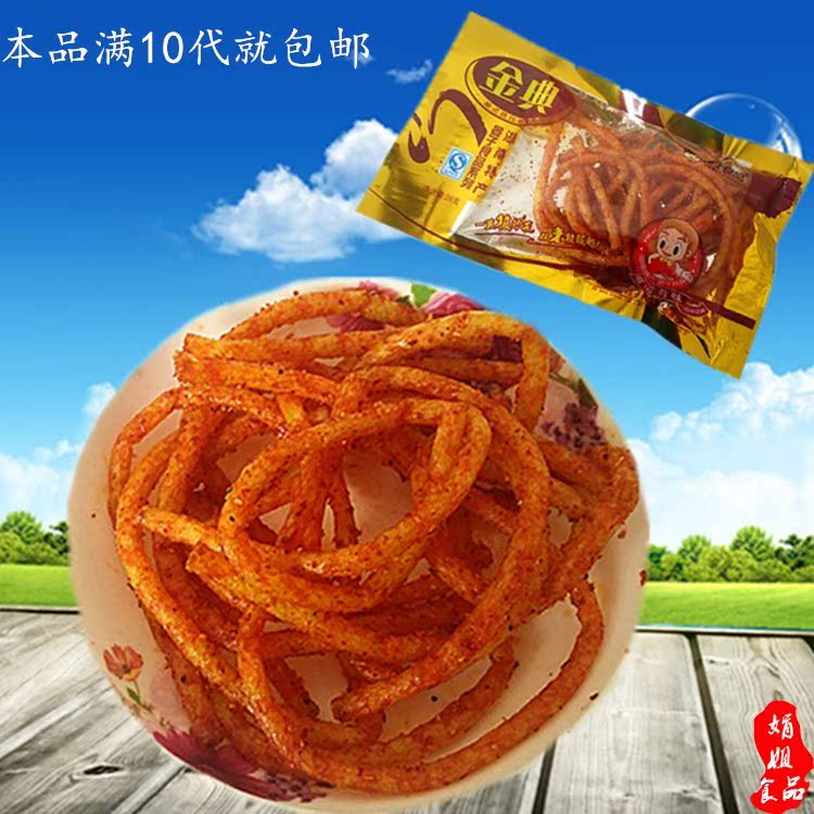 特价金典辣条_50袋多省包邮 80后经典怀旧零食 晏子金典辣条l辣片素食