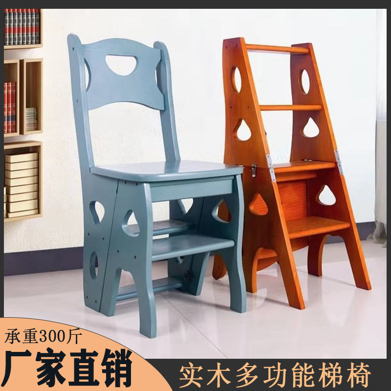实木可变形四步梯椅两用多功能家用折叠室内椅子梯子梯凳登高楼梯_不