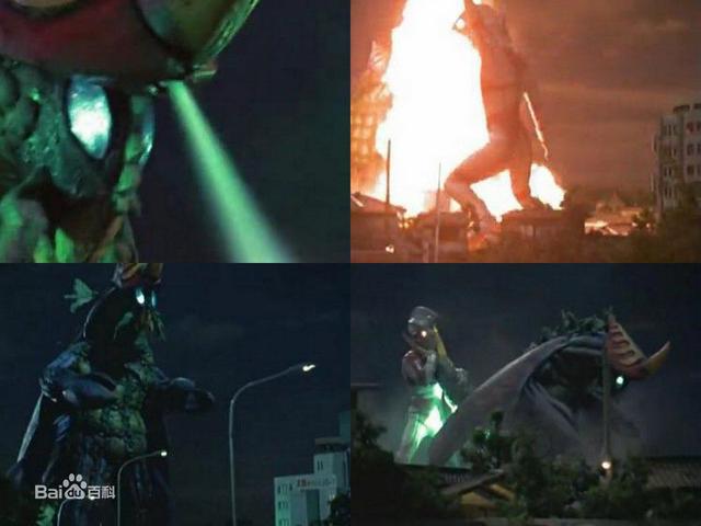 怪鱼超兽嘎兰头角发出的绿色闪光能引发爆炸和使仪器操纵失灵,嘴里吐