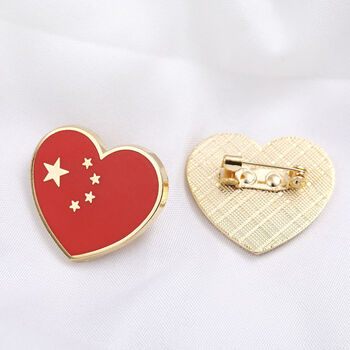 中国国旗徽章胸针胸章国庆五星红旗爱心形胸针出国旅游团胸章批发