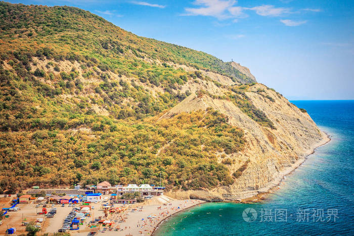 令人惊叹的风景山,黑海海岸有松树和五颜六色.