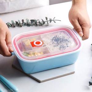 北欧蓝四格(不带餐具)视频介绍_三维工匠小学生保温饭盒可加热