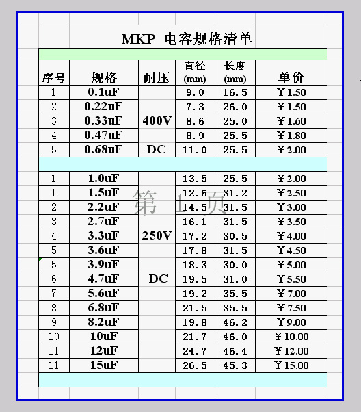 分频点电容对照表