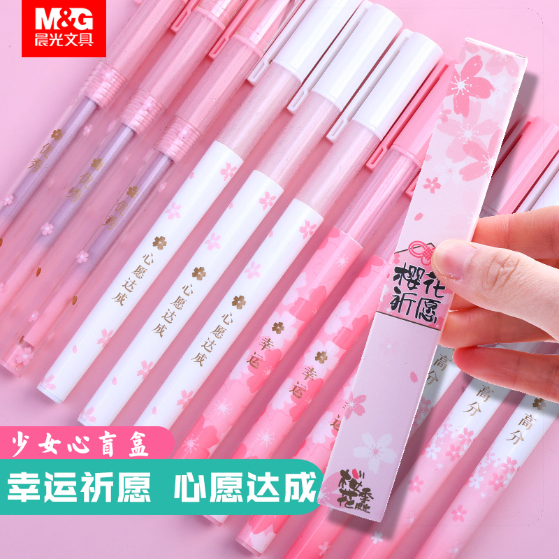 晨光新品盲盒樱花季限定笔黑笔樱花祈愿中性笔少女心文具签字笔黑色