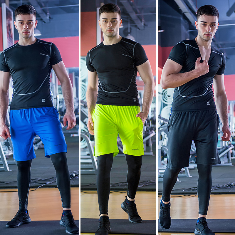 运动套装男健身服紧身衣短袖跑步速干男士训练篮球服紧身裤健身房_7折