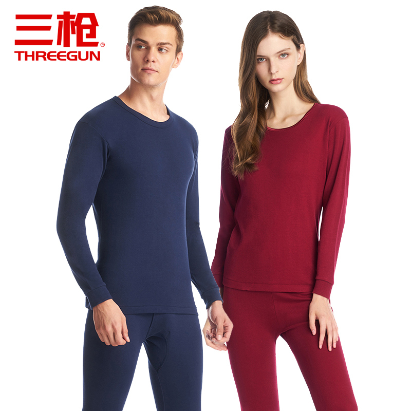 三枪 男女情侣款纯棉圆领亲肤透气全棉保暖内衣套装 21845/21731