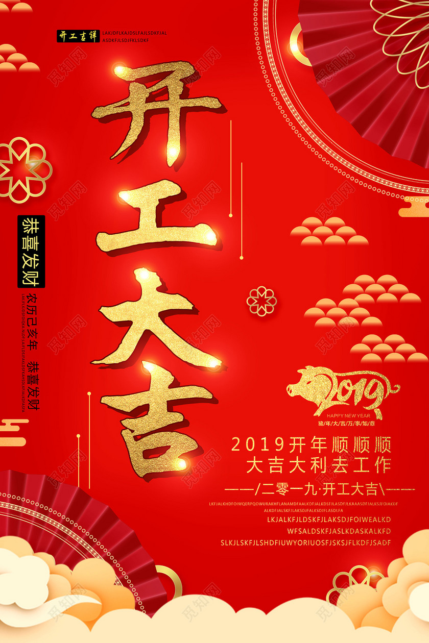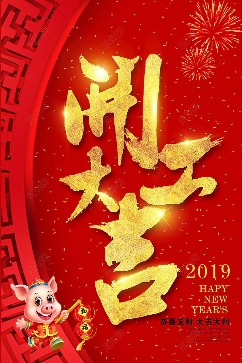 2019年猪年新年开工大吉恭喜发财大吉大利店庆宣传海报