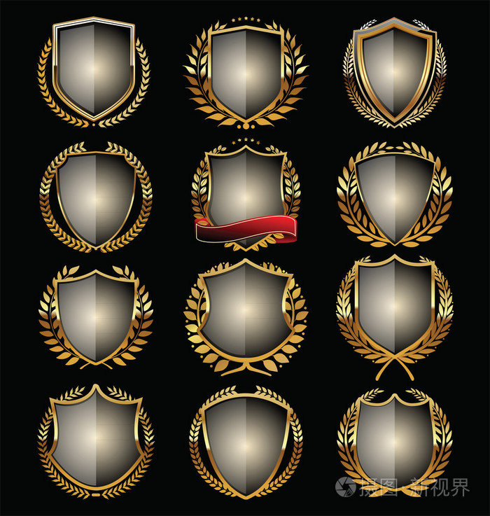 矢量金属质感蓝色盾牌形状徽章图标边框元素