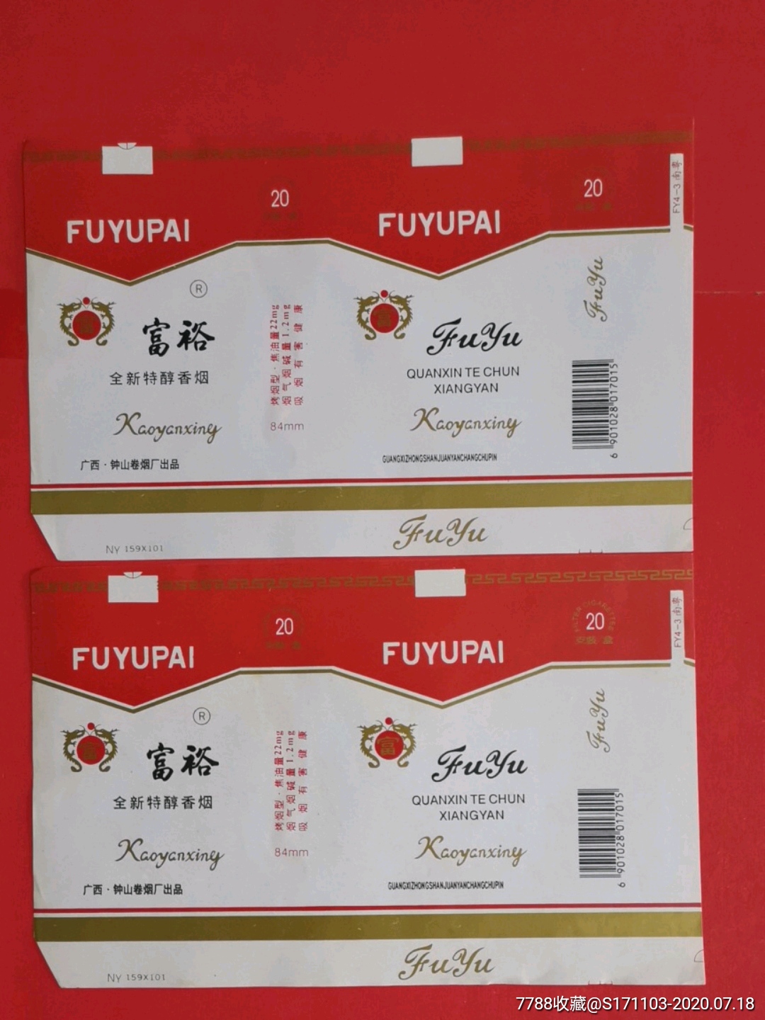 广西钟山卷烟厂富裕全新特醇香烟二枚