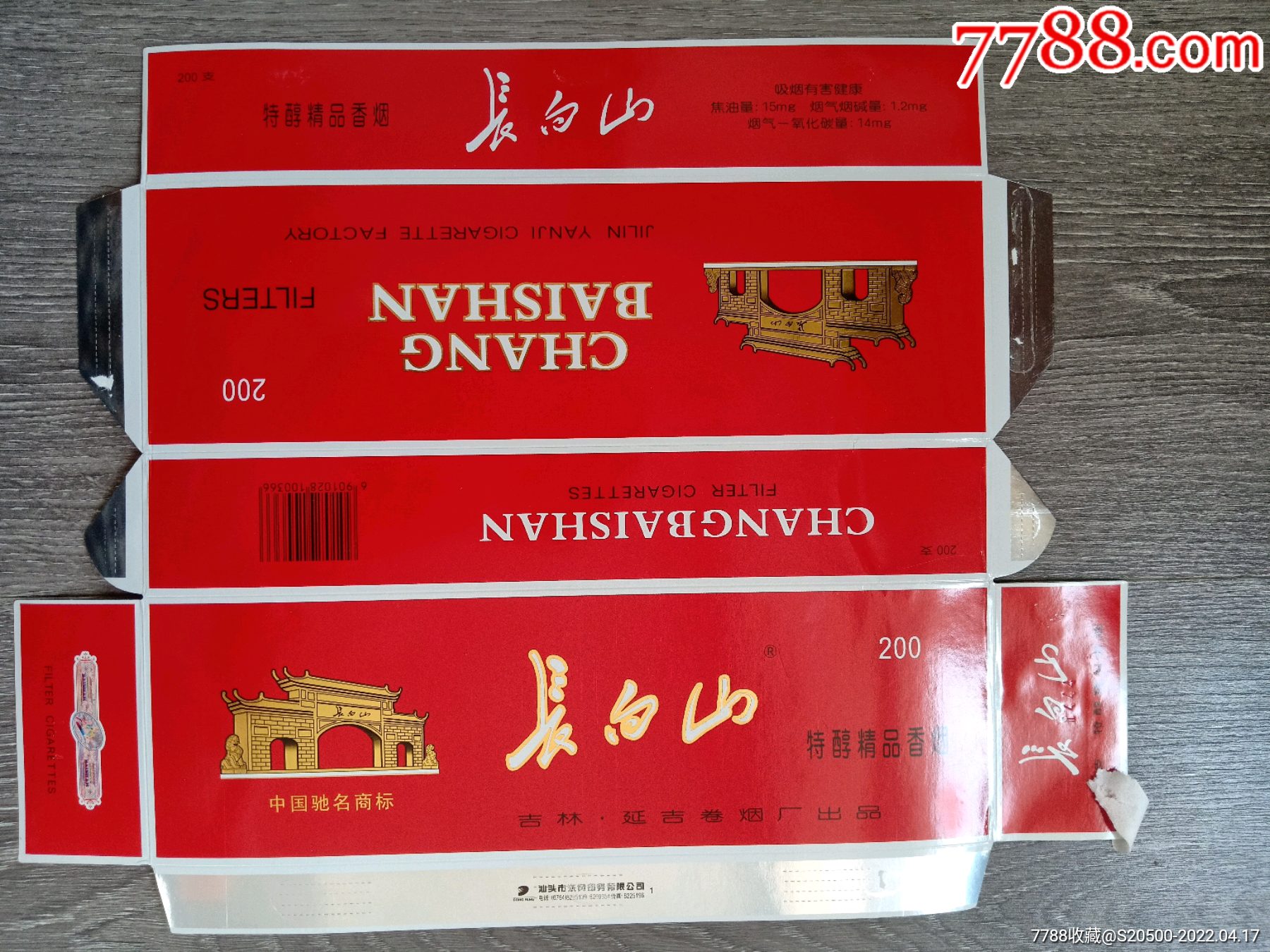 长白山特醇精品1100366焦油15mg吉林延吉卷烟厂