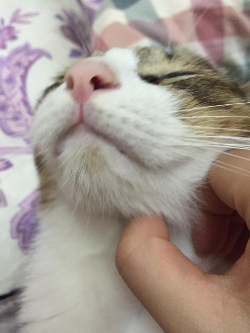 今天发现猫咪下巴有点黄,有一块有点红色,因为自己抱着
