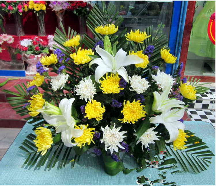 余姚名月花艺店/祭奠丧事菊花花篮花圈花束悼念鲜花/余姚全市配送