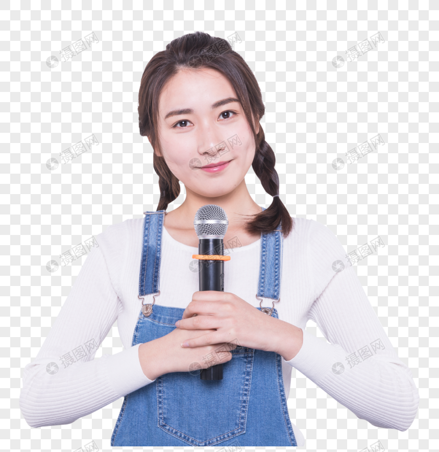 免抠元素 免抠人像 拿着话筒的女大学生.png