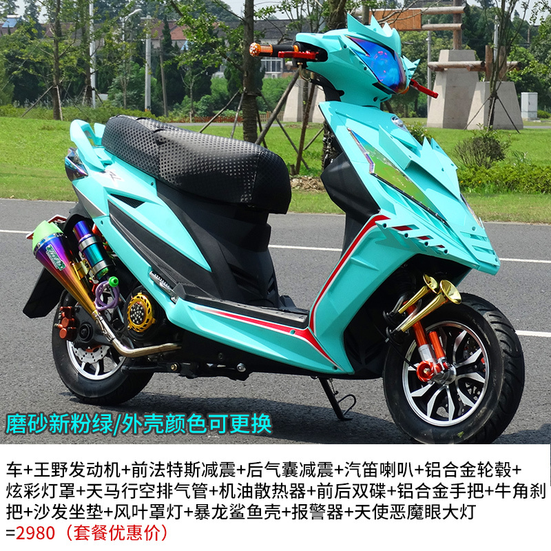 全新鬼火摩托车踏板整车可上牌燃油爆改助力国四电喷白幽灵纯白无贴花