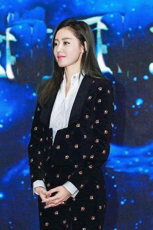 原创张天爱的春装有点酷,穿黑色西装配九分裤,脚踏短靴挺有气场!
